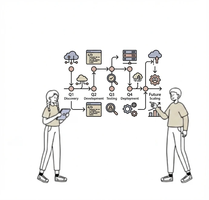 In the AI era, our Technology Consultation services empower organizations to make confident, future-ready decisions. We start with a needs assessment to understand goals and challenges, followed by a maturity assessment to benchmark readiness. Then, we create a tailored technology adoption roadmap with clear priorities and timelines, ensuring smooth implementation with minimal risk and maximum value.